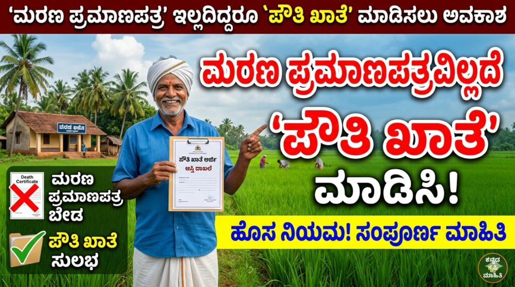 ಮರಣ ಪ್ರಮಾಣಪತ್ರ’ ಇಲ್ಲದಿದ್ದರೂ `ಪೌತಿ ಖಾತೆ’ ಮಾಡಿಸಲು ಅವಕಾಶ