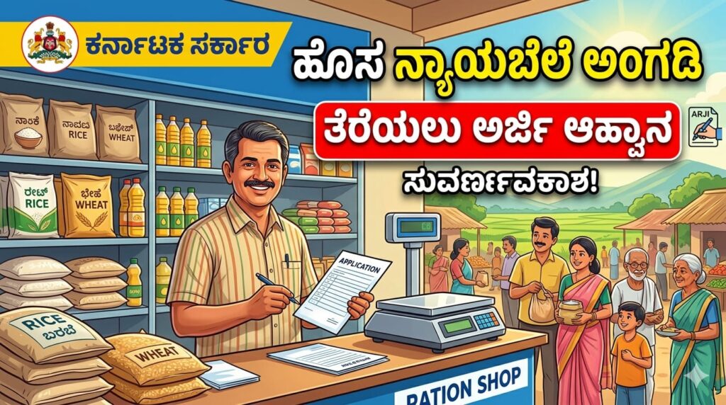 ಕರ್ನಾಟಕ ರಾಜ್ಯ ಸರ್ಕಾರವು ಸಾರ್ವಜನಿಕ ವಿತರಣಾ ವ್ಯವಸ್ಥೆಯನ್ನು (PDS) ಬಲಪಡಿಸಲು ಮತ್ತು ಬಡ ಜನರಿಗೆ ಸುಲಭವಾಗಿ, ಹತ್ತಿರದಲ್ಲಿ ಪಡಿತರ (ರೇಷನ್) ದೊರೆಯುವಂತೆ ಮಾಡಲು ಒಂದು ಮಹತ್ವದ ನಿರ್ಧಾರ ತೆಗೆದುಕೊಂಡಿದೆ. ರಾಜ್ಯದ ವಿವಿಧ ಜಿಲ್ಲೆಗಳ ಗ್ರಾಮೀಣ ಮತ್ತು ನಗರ ಪ್ರದೇಶಗಳಲ್ಲಿ ಖಾಲಿ ಇರುವ ಅಥವಾ ಹೊಸದಾಗಿ ಅವಶ್ಯಕತೆ ಇರುವ ಸ್ಥಳಗಳಲ್ಲಿ **ಹೊಸ ನ್ಯಾಯಬೆಲೆ ಅಂಗಡಿಗಳನ್ನು (Fair Price Shops / Ration Shops)** ತೆರೆಯಲು ಆಸಕ್ತ ಮತ್ತು ಅರ್ಹ ಅಭ್ಯರ್ಥಿಗಳಿಂದ ಅರ್ಜಿಗಳನ್ನು ಆಹ್ವಾನಿಸಲಾಗಿದೆ. ನೀವು ಸ್ವಂತ ಉದ್ಯೋಗ ಮಾಡಲು…