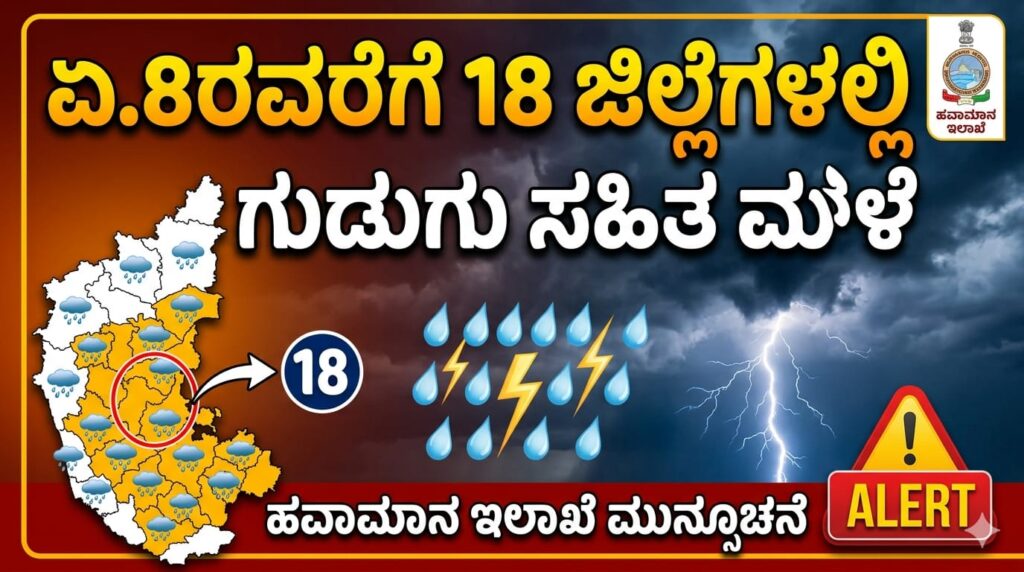 ಏ.8ರವರೆಗೆ 18 ಜಿಲ್ಲೆಗಳಲ್ಲಿ ಗುಡುಗು ಸಹಿತ ಮಳೆ: ಹವಾಮಾನ ಇಲಾಖೆ ಮುನ್ಸೂಚನೆ