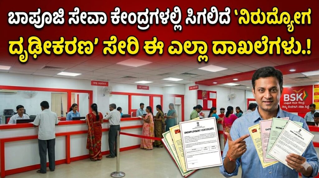 ಬಾಪೂಜಿ ಸೇವಾ ಕೇಂದ್ರಗಳಲ್ಲಿ ಸಿಗಲಿದೆ `ನಿರುದ್ಯೋಗ ದೃಢೀಕರಣ’ ಸೇರಿ ಈ ಎಲ್ಲಾ ದಾಖಲೆಗಳು.!