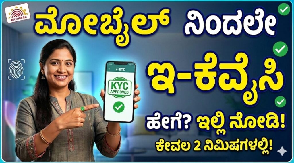 ಸಮಸ್ತ ಜನರಿಗೂ ನಮಸ್ಕಾರ! ಇಂದಿನ ಡಿಜಿಟಲ್ ಜಗತ್ತಿನಲ್ಲಿ, ಪ್ರತಿಯೊಂದು ಸೇವೆಗೂ ಆನ್ಲೈನ್ ಪರಿಶೀಲನೆ ಅತ್ಯಗತ್ಯವಾಗಿದೆ. ಅದರಲ್ಲೂ “ಇ-ಕೈವೈಸಿ” (e-KYC) ಎನ್ನುವುದು ಬ್ಯಾಂಕಿಂಗ್, ಟೆಲಿಕಾಂ, ಮತ್ತು ವಿವಿಧ ಸರ್ಕಾರಿ ಯೋಜನೆಗಳ ಲಾಭ ಪಡೆಯಲು ಕಡ್ಡಾಯವಾದ ಪ್ರಕ್ರಿಯೆಯಾಗಿದೆ. ಈ ಲೇಖನದಲ್ಲಿ, ನಿಮ್ಮ **ಸ್ವಂತ ಮೊಬೈಲ್ ನಿಂದ ಇ-ಕೈವೈಸಿ ಮಾಡಿಕೊಳ್ಳುವುದು ಹೇಗೆ** ಎಂಬುದರ ಕುರಿತು ಸರಳ ಮತ್ತು ಹಂತ ಹಂತದ ಮಾಹಿತಿಯನ್ನು ನೀಡುತ್ತಿದ್ದೇವೆ. ಇದು ನಿಮಗೆ ಕಚೇರಿಗಳಿಗೆ ಅಲೆಯುವ ಸಮಯವನ್ನು ಉಳಿಸುವುದಲ್ಲದೆ, ಪ್ರಕ್ರಿಯೆಯನ್ನು ಸುಲಭಗೊಳಿಸುತ್ತದೆ. — ### **ಮೊಬೈಲ್ ನಲ್ಲಿ ಇ-ಕೈವೈಸಿ…