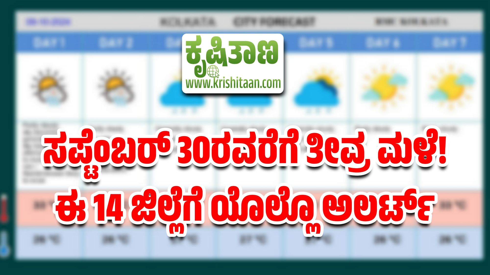 ಇತ್ತೀಚಿನ ದಿನಗಳಲ್ಲಿ ನಮ್ಮ ರಾಜ್ಯದ ಕೆಲವು ಭಾಗಗಳಲ್ಲಿ ಮಳೆ ಸಾಕಷ್ಟು ಪ್ರಮಾಣದಲ್ಲಿ ಆಗುತ್ತಿರುವುದು ಗಮನಕ್ಕೆ ಬಂದಿದೆ. ಕೆಲವು ಭಾಗಗಳಲ್ಲಿ ಮಳೆಯ ಕೊರತೆಯೂ ಇದೆ.ಇತ್ತೀಚಿನ ನವೀಕರಣಗಳನ್ನು ಹವಾಮಾನ ಇಲಾಖೆಗಳು ನೀಡಿವೆ.ಹವಾಮಾನ ಇಲಾಖೆಯ ಪ್ರಕಾರ, ಸೆಪ್ಟೆಂಬರ್ 30 ರವರೆಗೆ ಭಾರೀ ಮಳೆಯಾಗುವ ಸಾಧ್ಯತೆ ಇರುವುದರಿಂದ ರಾಜ್ಯದ 14 ಜಿಲ್ಲೆಗಳಲ್ಲಿ ಯಲ್ಲೋ ಅಲರ್ಟ್ ಅನ್ನು ಅನ್ವಯಿಸಬೇಕು ಎಂದು ಘೋಷಿಸಲಾಗಿದೆ.ಜಮೀನುಗಳಲ್ಲಿ ಕೆಲಸ ಮಾಡುವ ರೈತರು, ಶಾಲಾ ಕಾಲೇಜುಗಳಿಗೆ ಹೋಗುವ ವಿದ್ಯಾರ್ಥಿಗಳು, ಮನೆಯಿಂದ ಆಚೆ ಕೆಲಸಕ್ಕೆ ಹೋಗುವವರು ಮುನ್ನೆಚ್ಚರಿಕೆಯ ಕ್ರಮಗಳನ್ನ ತೆಗೆದುಕೊಳ್ಳಲು ಸೂಚಿಸಲಾಗಿದೆ. ಭಾರೀ ಮಳೆಯಿಂದಾಗಿ ಅನೇಕ ಪ್ರದೇಶಗಳಲ್ಲಿ ಭೂಕುಸಿತಗಳು, ಮನೆ ಕುಸಿತ ಮತ್ತು ಗುಡ್ಡ ಕುಸಿತ ಸಂಭವಿಸುತ್ತಿವೆ. ಸೆಪ್ಟೆಂಬರ್ 24 ರವರೆಗೆ ರಾಜ್ಯದ 12 ಜಿಲ್ಲೆಗಳಲ್ಲಿ ಅನಿಯಂತ್ರಿತ ಮಳೆಯಾಗುತ್ತಿರುವುದರಿಂದ ಹವಾಮಾನ ಇಲಾಖೆಯು ಯಲ್ಲೋ ಅಲಟ೯ನ್ನು ಘೋಷಿಸಿದೆ.