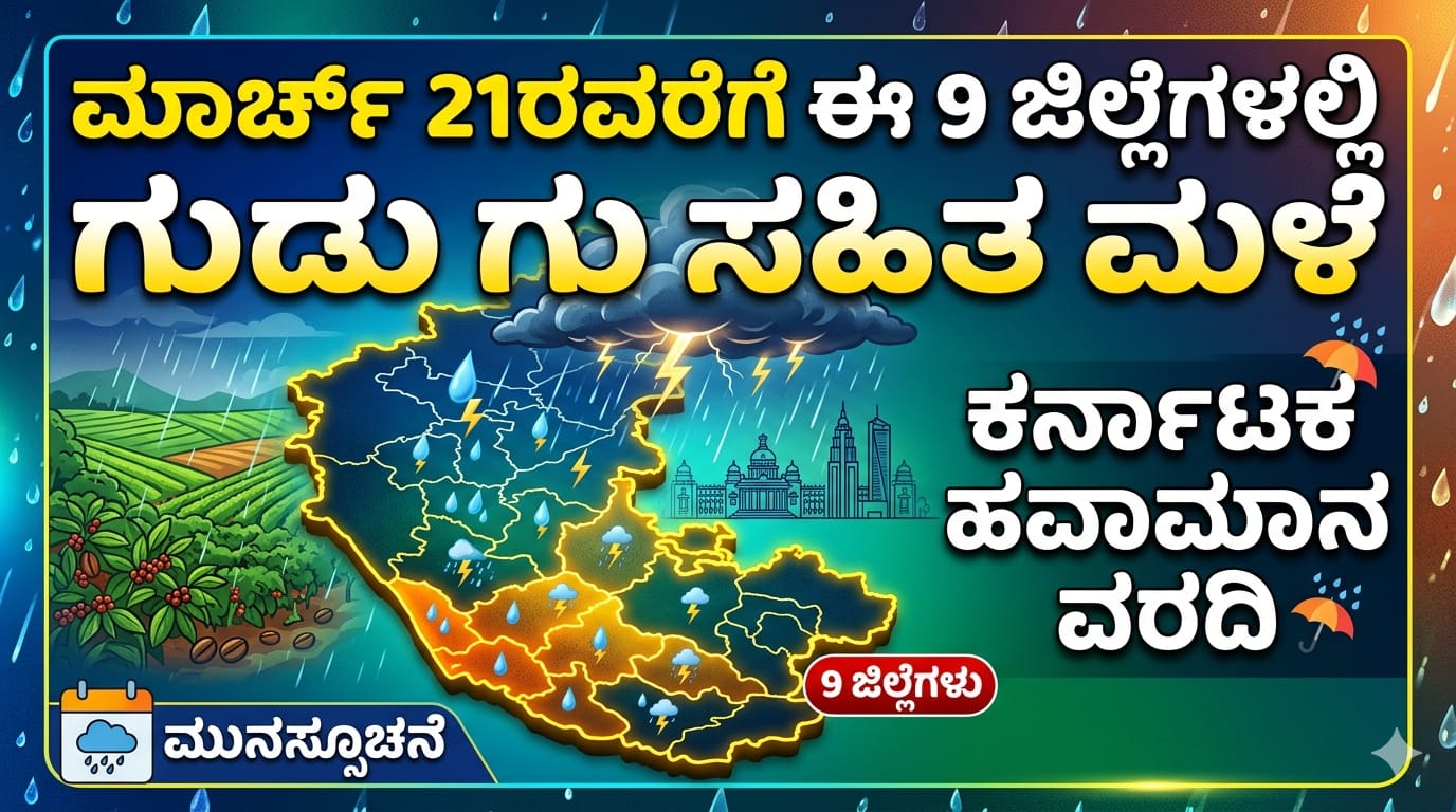 ಕರ್ನಾಟಕ ಮಳೆ ಅಪ್ಡೇಟ್: ಮಾರ್ಚ್ 21ರವರೆಗೆ ಈ 9 ಜಿಲ್ಲೆಗಳಲ್ಲಿ ಗುಡುಗು ಸಹಿತ ಮಳೆ ಮುನ್ಸೂಚನೆ!
