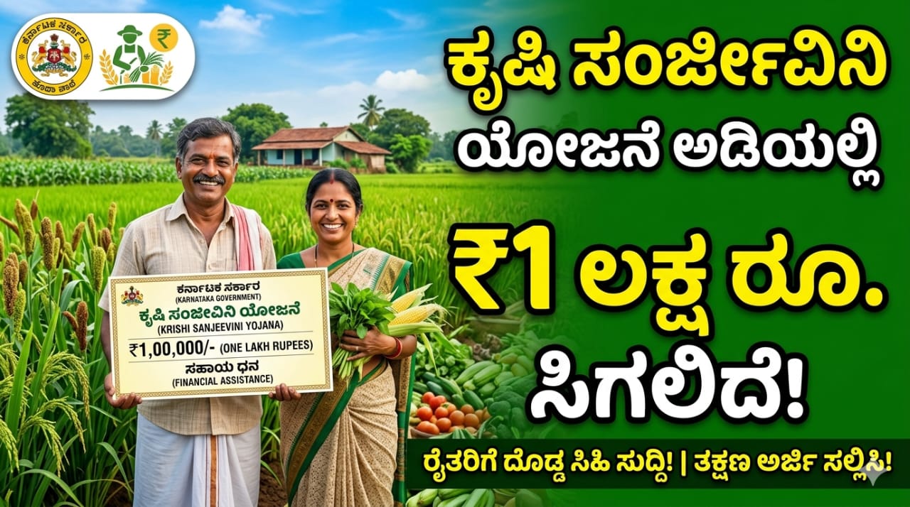 ಕೃಷಿ ಸಂಜೀವಿನಿ ಯೋಜನೆ ಅಡಿಯಲ್ಲಿ ಸಿಗಲಿದೆ 1ಲಕ್ಷ ರೂ‌.